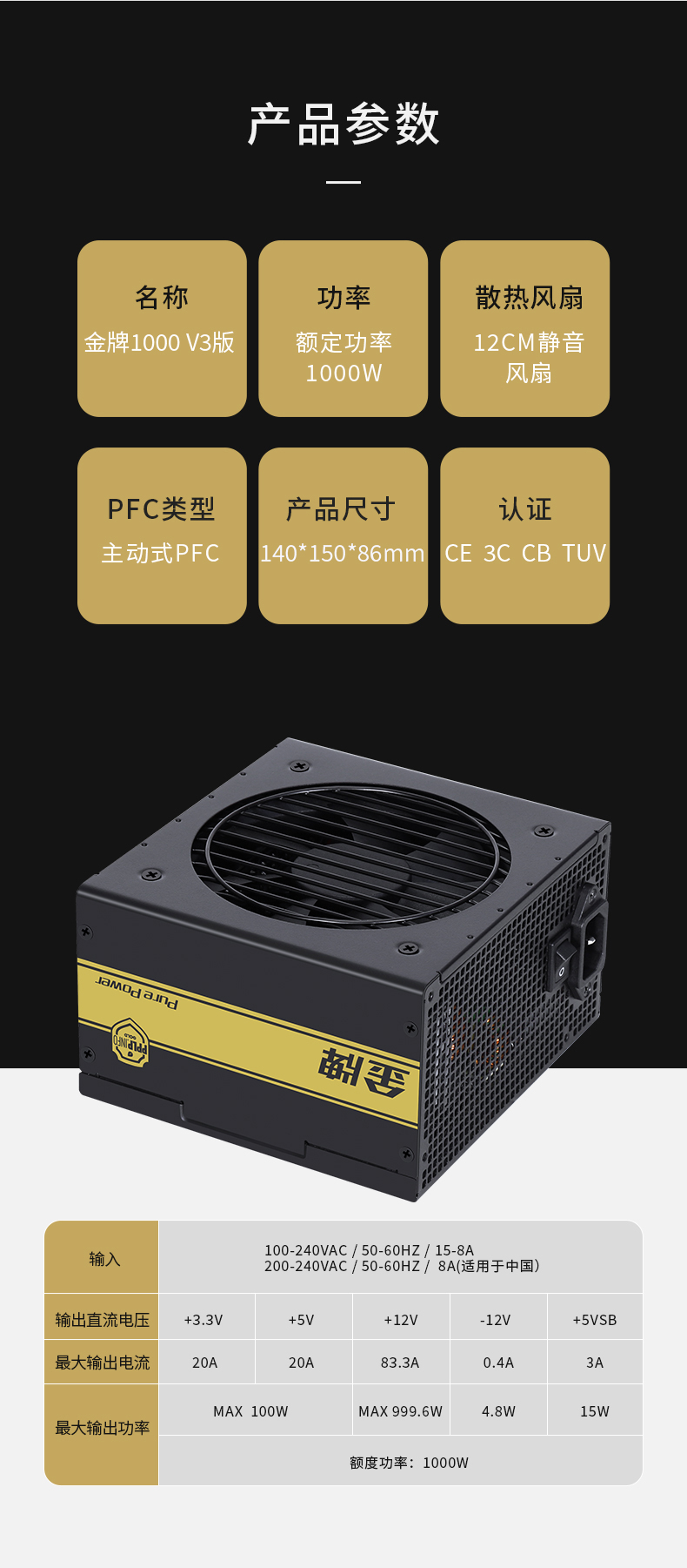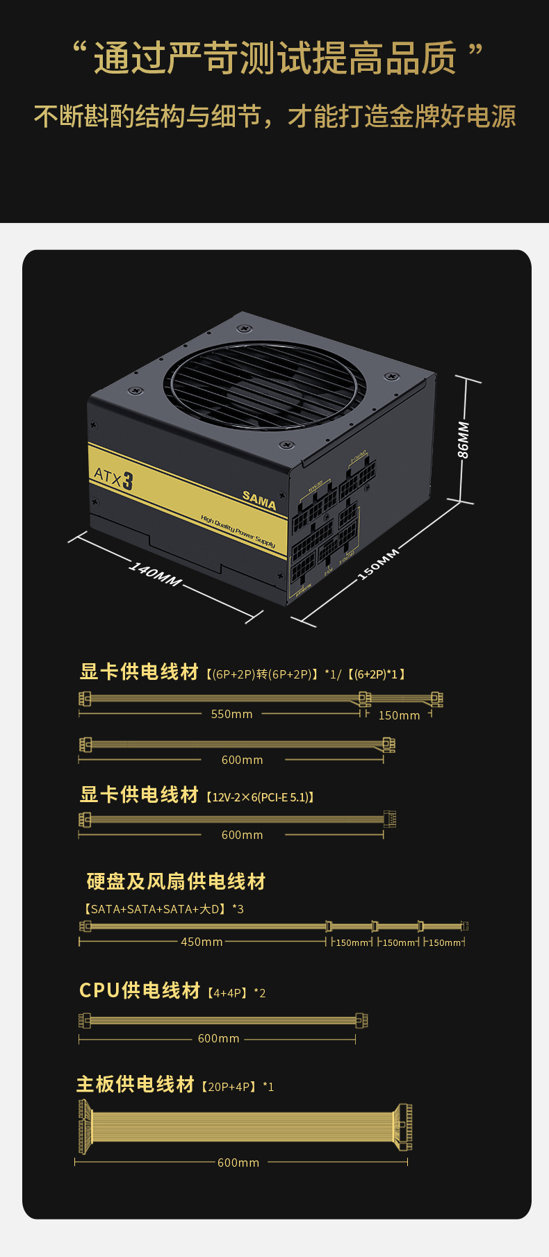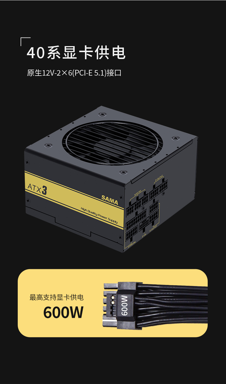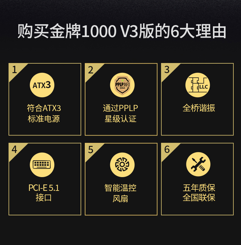 先馬(SAMA)金牌1000W V3版 ATX3電腦機(jī)箱電源 PPLP金牌/PCIE5.1/全模組線/14CM短機(jī)身/多重安全認(rèn)證/