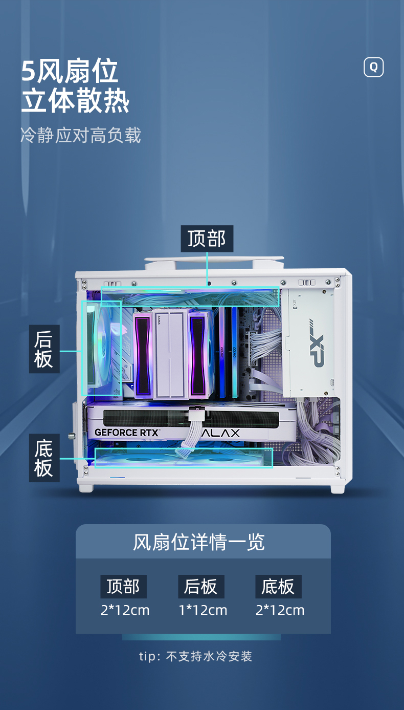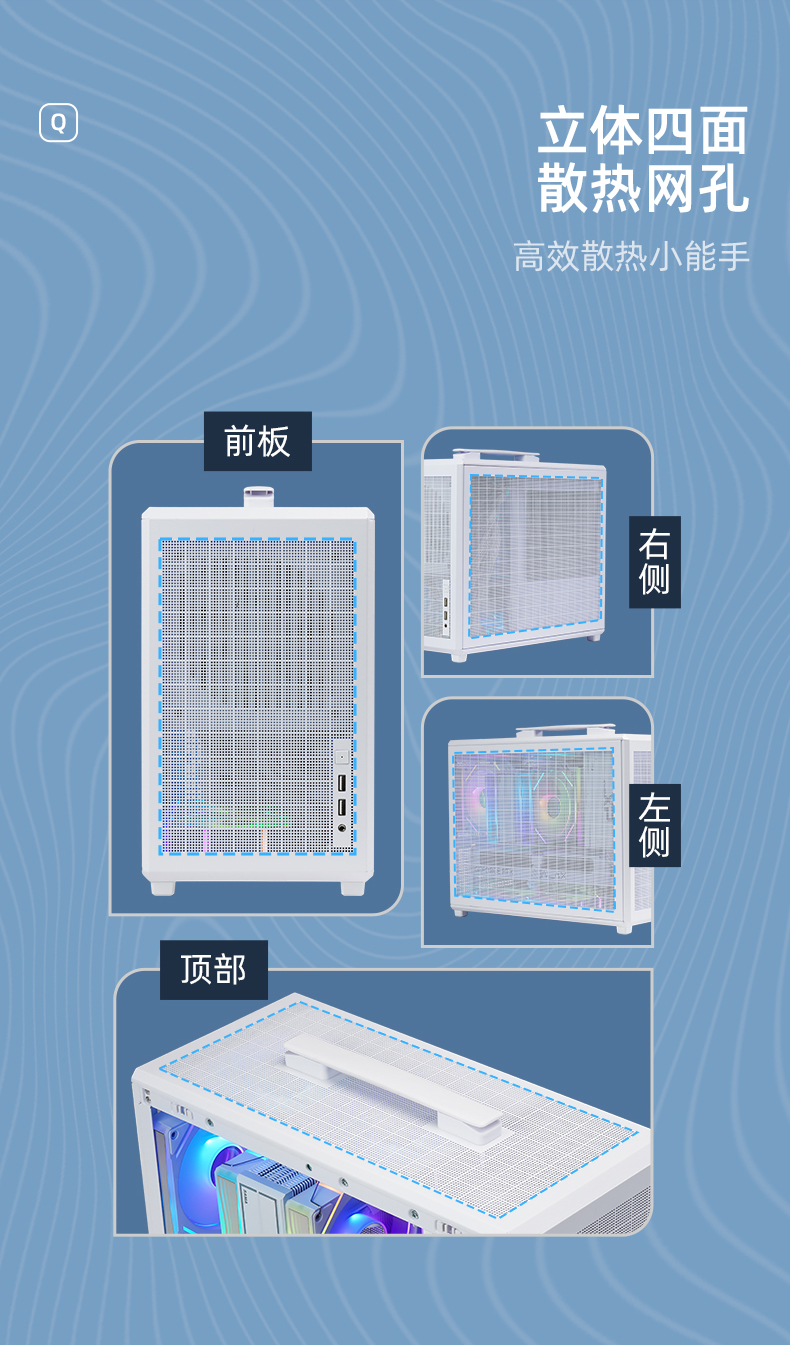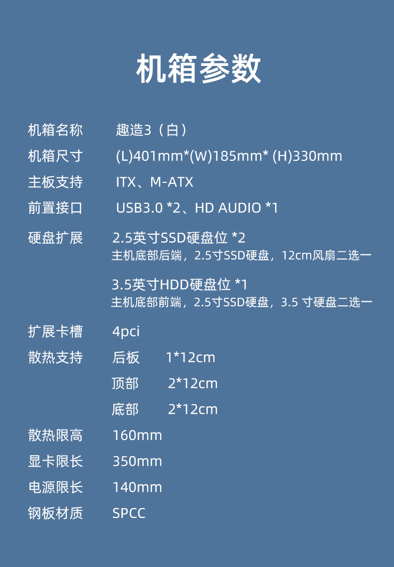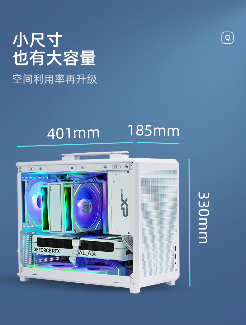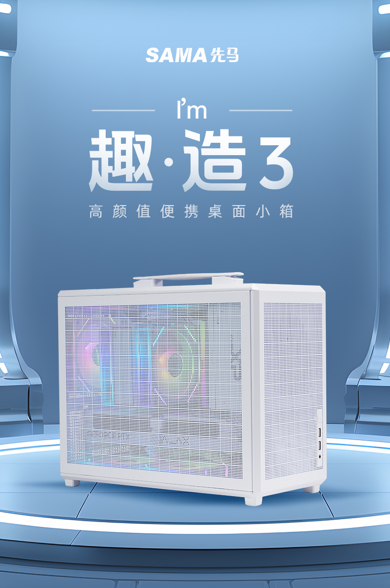 先馬(SAMA)趣造3 桌面便攜手提式M-atx小機(jī)箱四面網(wǎng)孔/5風(fēng)扇位/≤160mm散熱/350mm顯卡/ATX電源 趣造3 白色