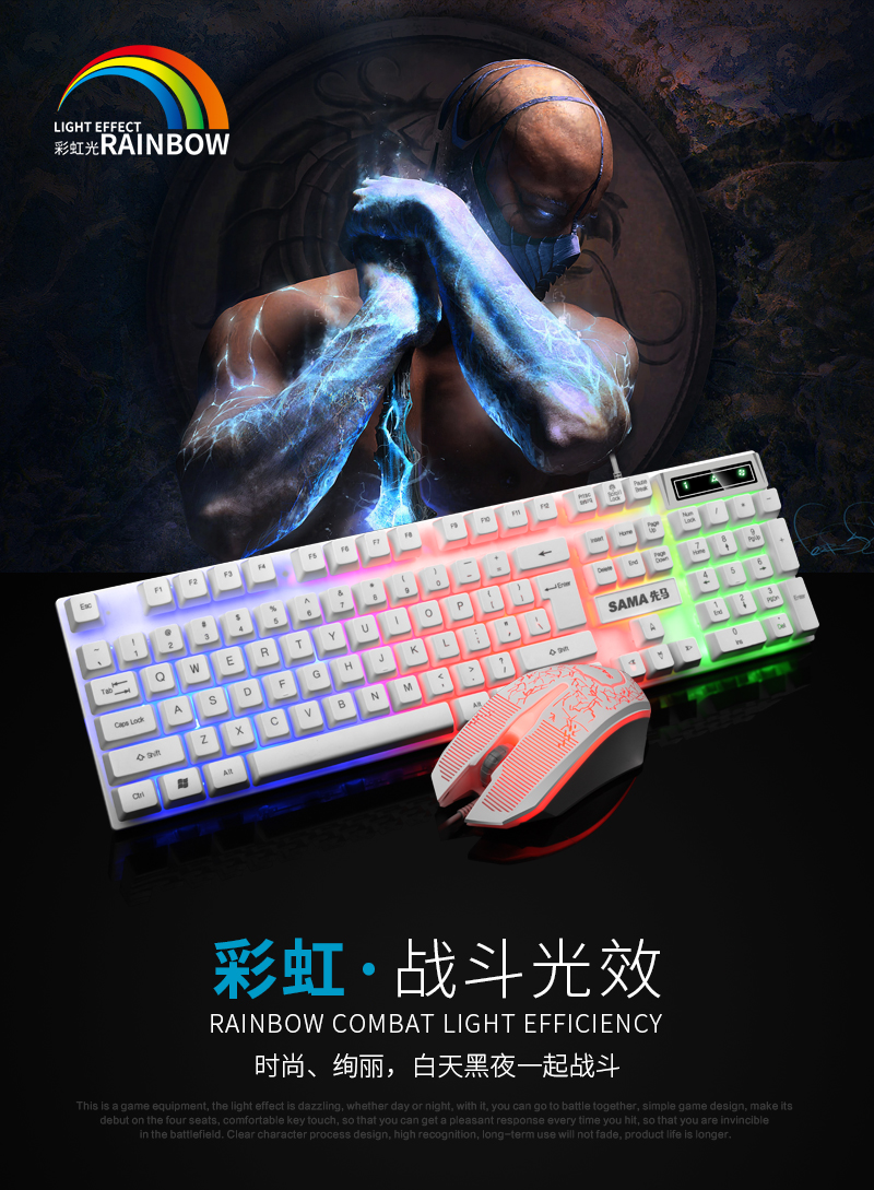 先馬SAMA GT810游戲鍵鼠套裝(懸浮鍵帽,彩虹光效,鐳雕字符,防滑滾輪)GT810發(fā)光鍵鼠套裝,游戲娛樂電競暢玩