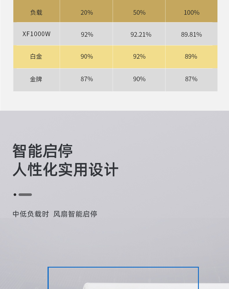 額定1000W,80PLUS金牌認證,全能模組,高品質日系大電容,風扇一鍵啟停