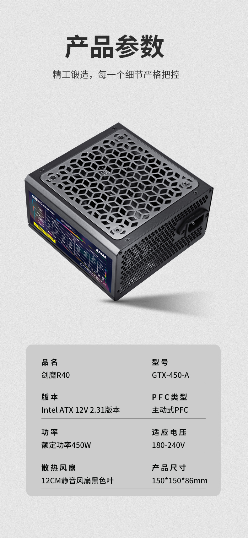 先馬SAMA 劍魔R40 精品電源(額定450W,主動(dòng)式PFC,寬幅180-240V,靜音)打造一款專屬于你的電源