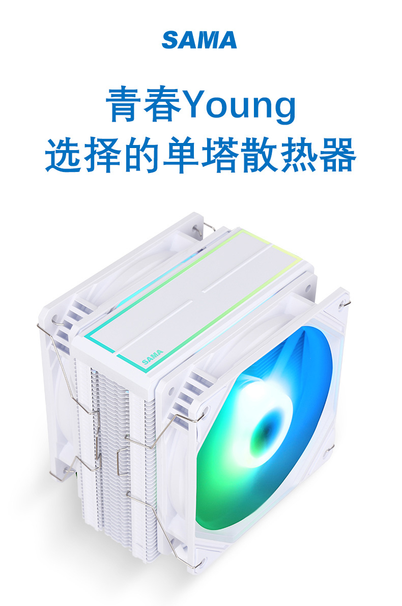 先馬SAMA KA600DW CPU散熱器(6熱管直觸,PWM風扇,ARGB燈光,鎖螺絲雙平臺)雙風扇單塔散熱器