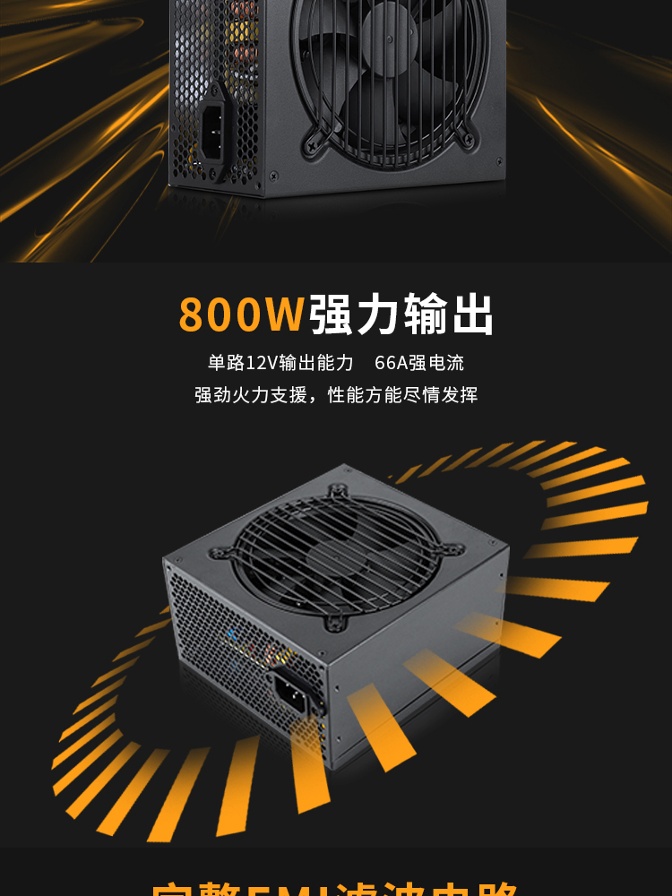 先馬SAMA 坦克935高級游戲電源(額定800W,+12V輸出,主動(dòng)PFC,12CM靜音風(fēng)扇)額定功率不虛標(biāo),+12V輸出很強(qiáng)勁,6+2Pin暢爽競技,12CM散熱風(fēng)扇清爽自在
