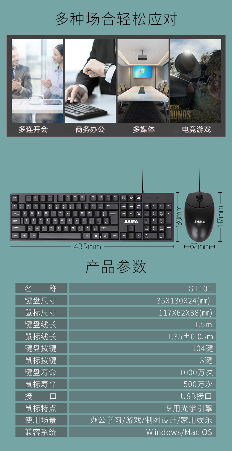 先馬SAMA 有線鍵盤鼠標套裝靜音辦公臺式電腦筆記本打字專用USB外接通