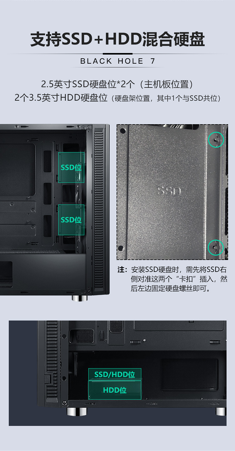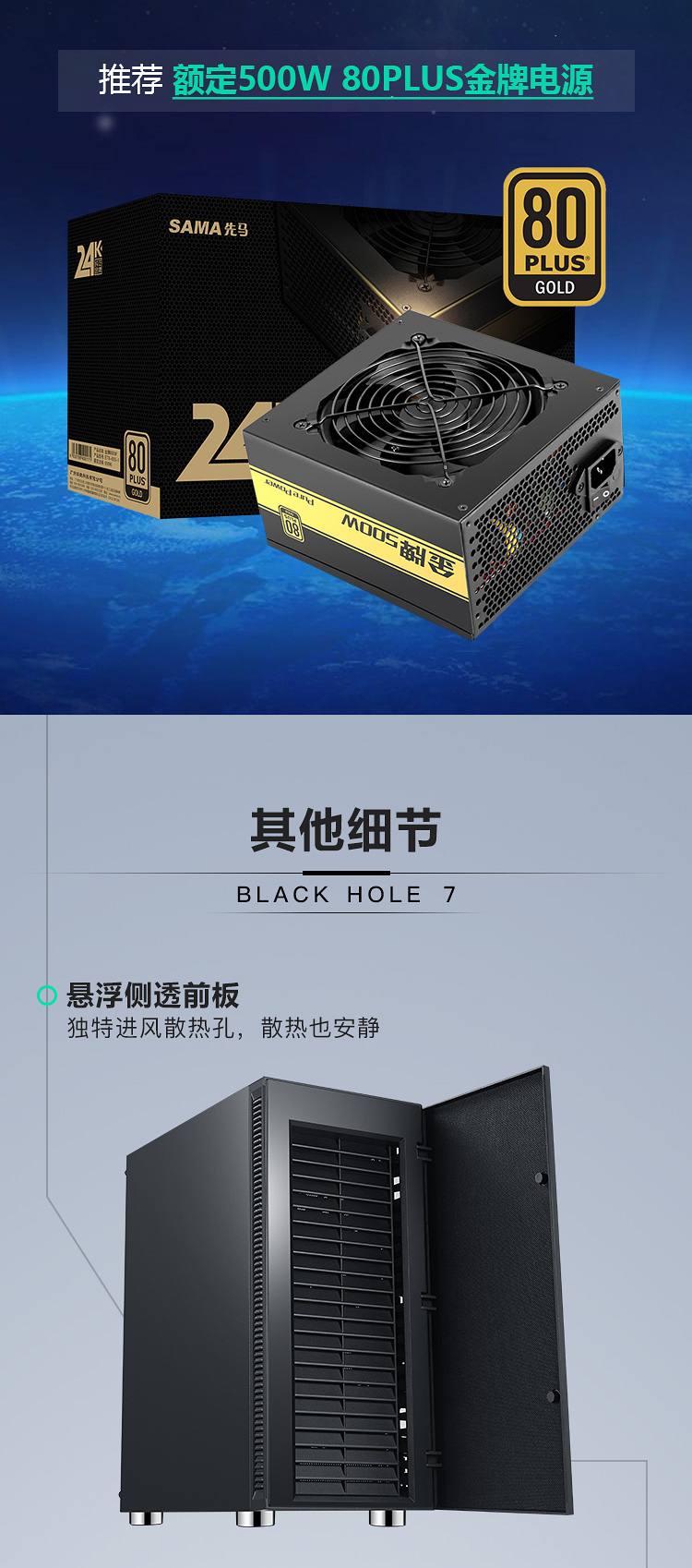 先馬SAMA 黑洞7(黑)游戲機(jī)箱(兼容3SSD硬盤,PCI7槽,寬大背線21MM.U3高速傳輸)無懼硬件挑戰(zhàn),黑洞7與眾不同,請為我出彩!