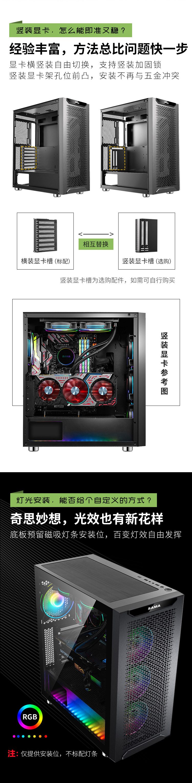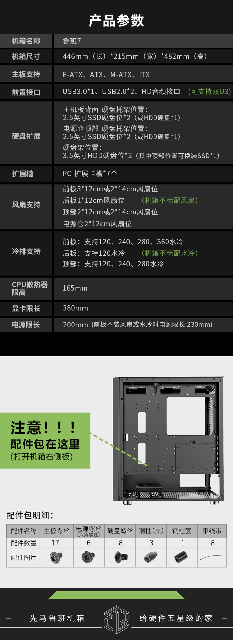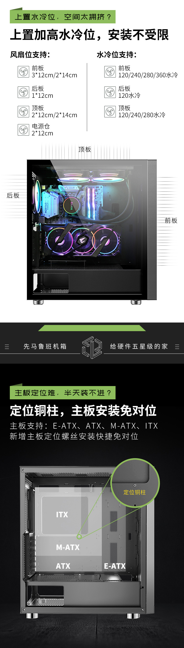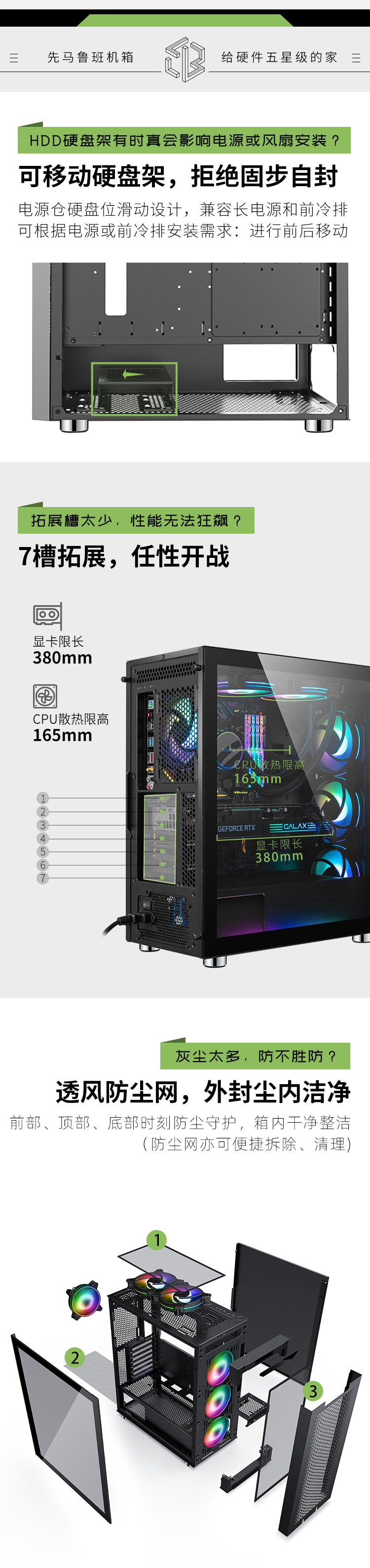 先馬SAMA 魯班7 精品游戲機(jī)箱(鋼化玻璃側(cè)透,寬大背線,兼容顯卡380mm,U3)給硬件5星級(jí)的家