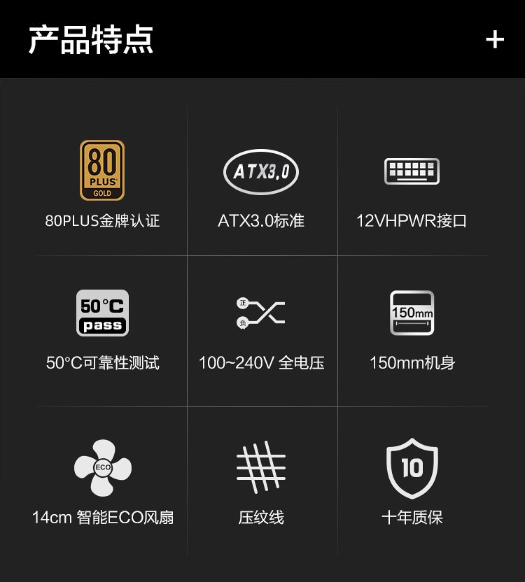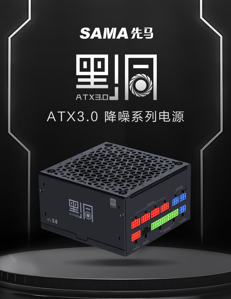 先馬(SAMA)黑洞1000W ATX3.0金牌機(jī)箱電腦電源 靜謐低噪/PCIE5.0/顏色管理模組接口/14cm風(fēng)扇/壓紋線