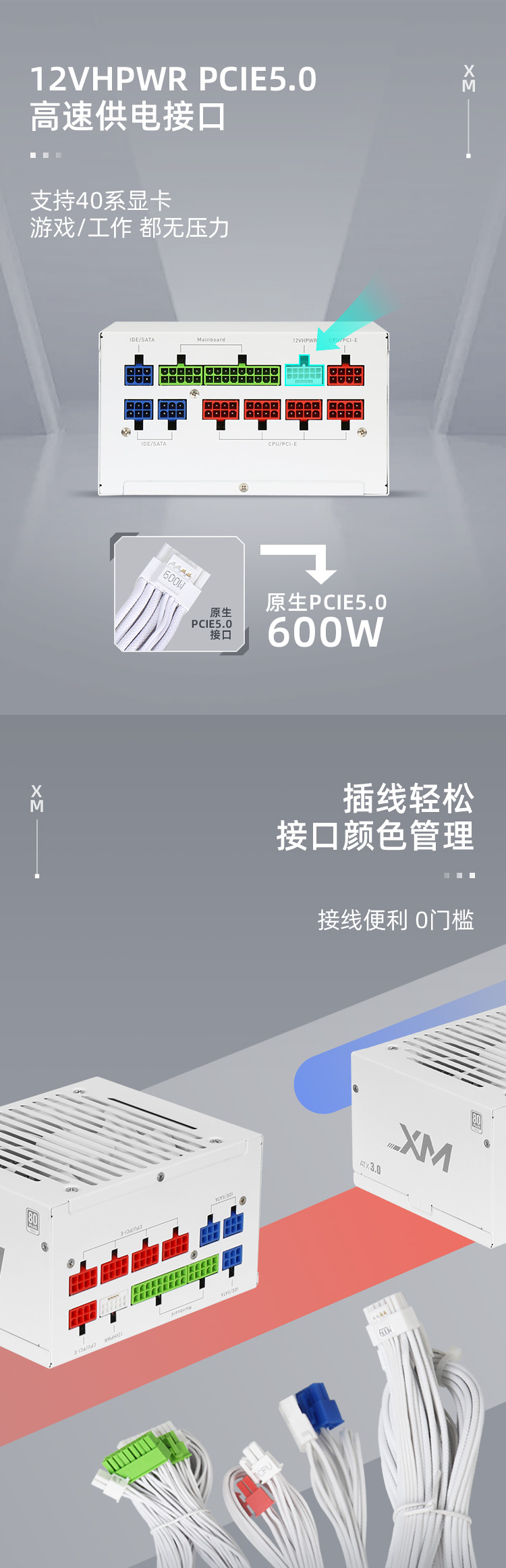 先馬(SAMA)XM750W白色臺式機箱窄體電源 ATX3.0標(biāo)準/122mm短機身/80PLUS金牌/壓紋線/ECO風(fēng)扇/多重安全認證