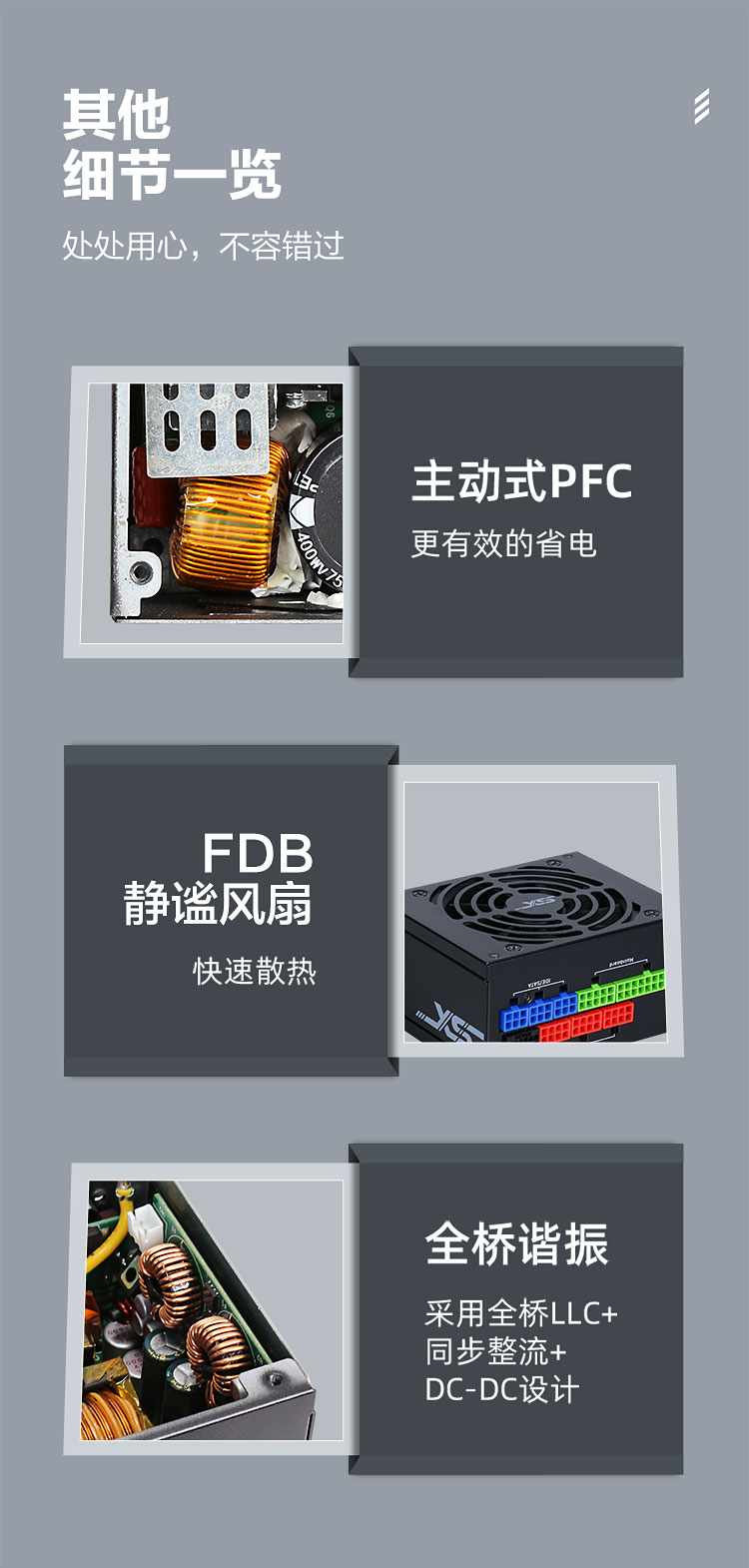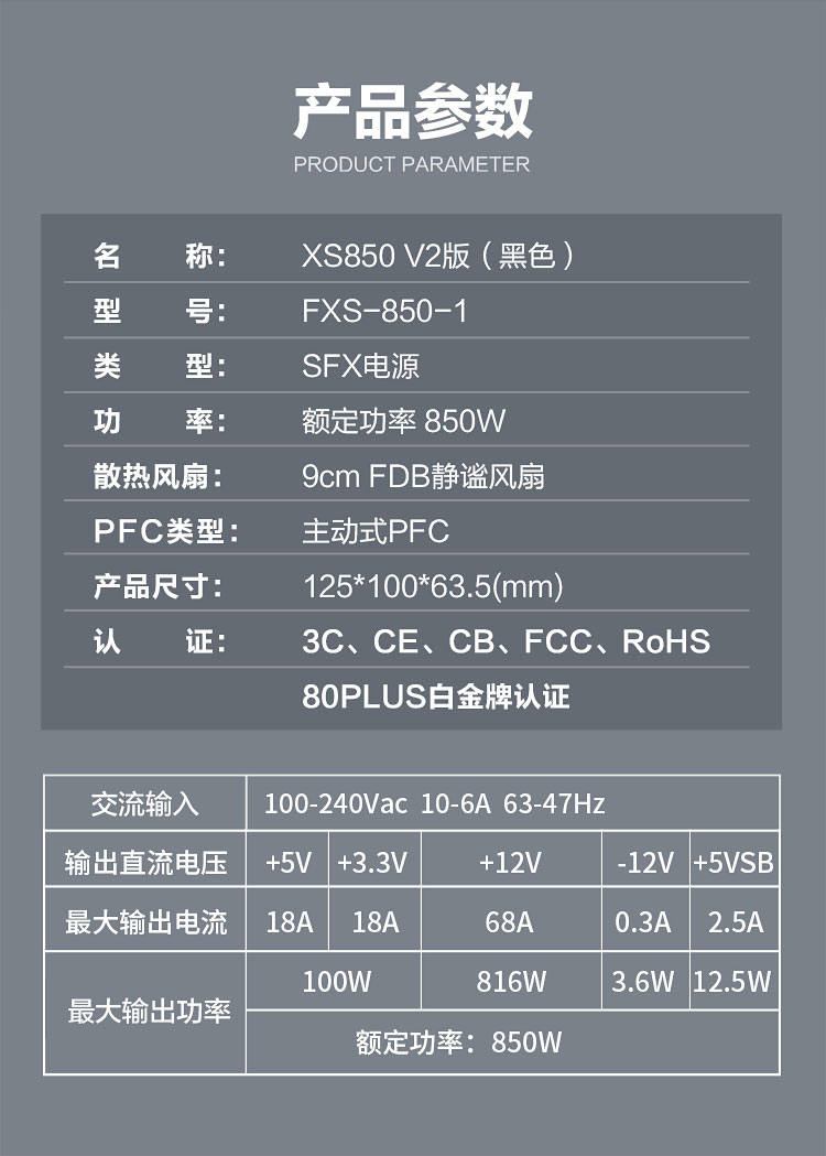 先馬(SAMA)XS850 白金牌全模組黑色SFX電腦電源850W PCI-E5.0接口/顏色管理/壓紋線/9cm溫控風(fēng)扇/FDB軸承