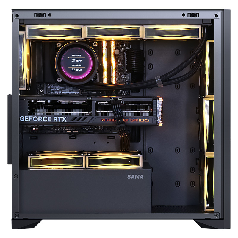 先馬(SAMA)朱雀6 黑色 游戲電腦主機(jī)箱 前板網(wǎng)孔/玻璃側(cè)透/235mm寬體/支持背插式主板、410mm顯卡、360水冷位