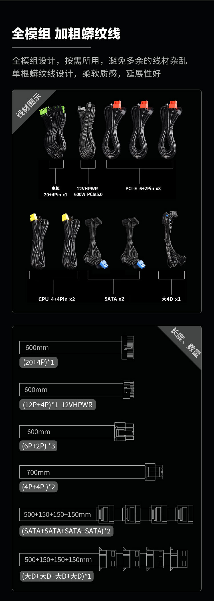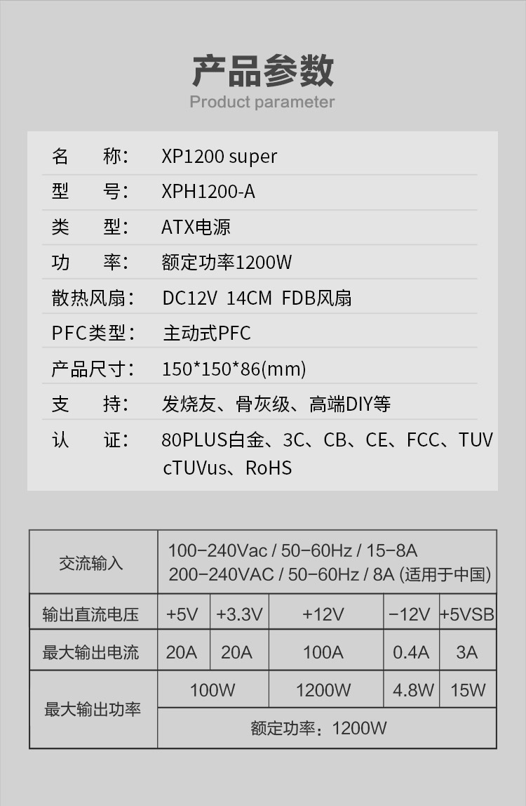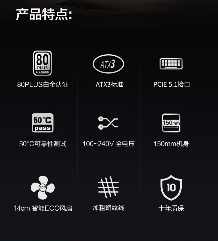 XP Super系列 ATX3白金牌/機箱電腦電源臺式機 PCIE5.1/智能ECO風扇/壓紋線/十年質(zhì)保