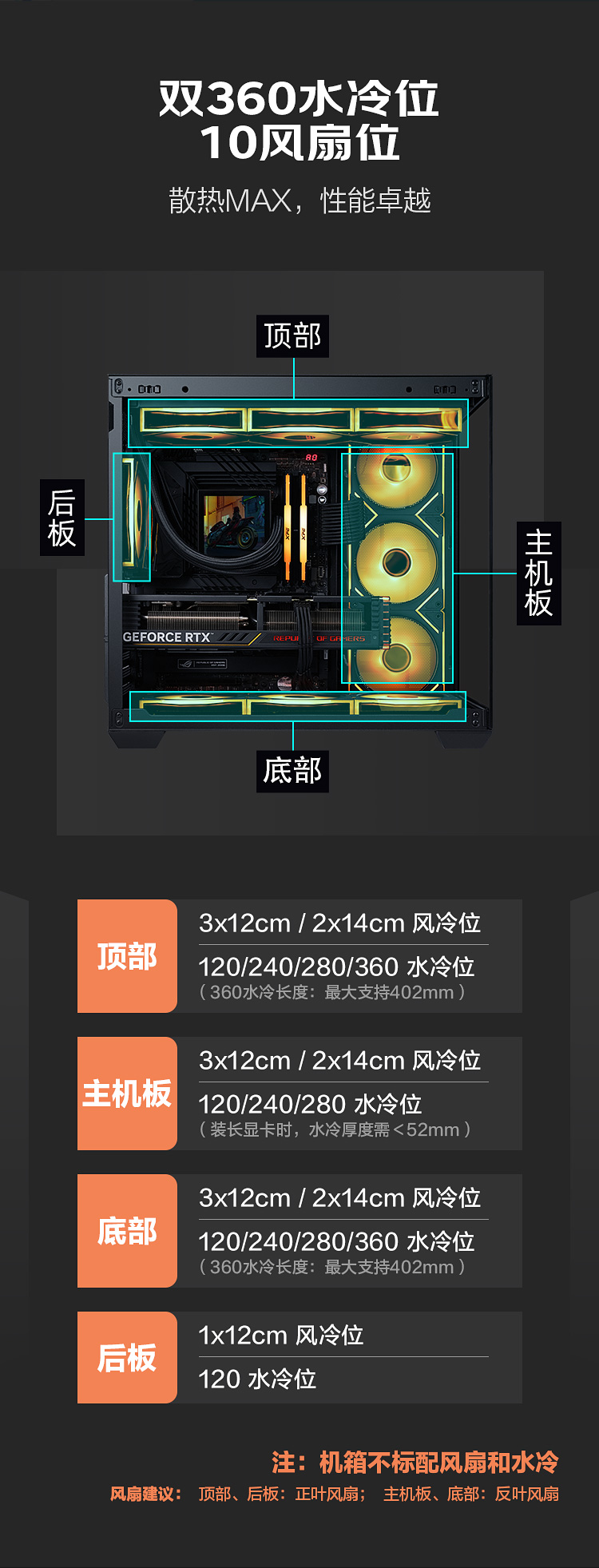 先馬(SAMA)Q98黑色 游戲電腦主機(jī)海景房機(jī)箱 雙面玻璃/支持ATX背插主板/雙360水冷位/10風(fēng)扇位/標(biāo)配Type-C
